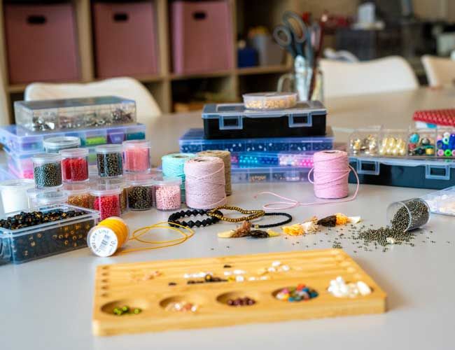 - Enthalten: alle Materialien wie Perlen, Charms, Mini-Tassels, elastisches Garn und Verschlüsse. Ebenso gibt es natürlich Getränke und Snacks dazu.